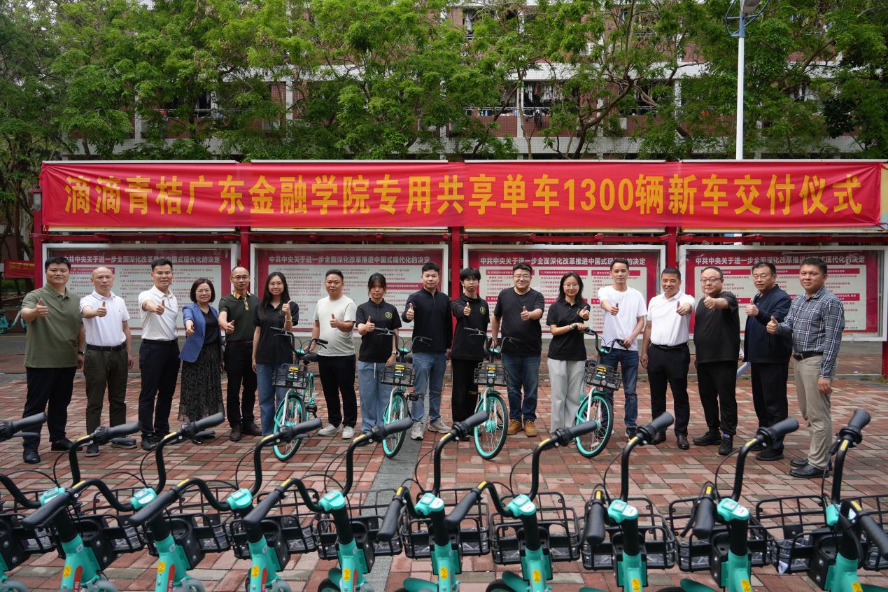 3月30日,滴滴青桔广东金融学院专用共享单车1300辆新车交付仪式在广州校区举行,滴滴青桔公司校园业务总监肖洋胜等领导和我校党委宣传部、学生工作处、保卫处、资产管理处、基建后勤管理处、后勤服务中心、校团委等部门负责人和校学生会学生代表参加了仪式,来自校学生会的同学开心地从青桔公司领导手中接过新车骑行校园,标志着1300辆全新青桔单车已完成投放并正式投入使用。这1300辆新车均采用青桔最新一代车型,在骑行舒适性、使用安全性、运维智能化等方面实现了全方位升级,将为全校师生带来更加便捷、舒适、安全的出行体验。本次车辆更新是滴滴青桔积极响应师生诉求、深度参与校园服务升级的重要举措,标志着双方在共建绿色智慧校园交通体系方面迈出了坚实步伐。