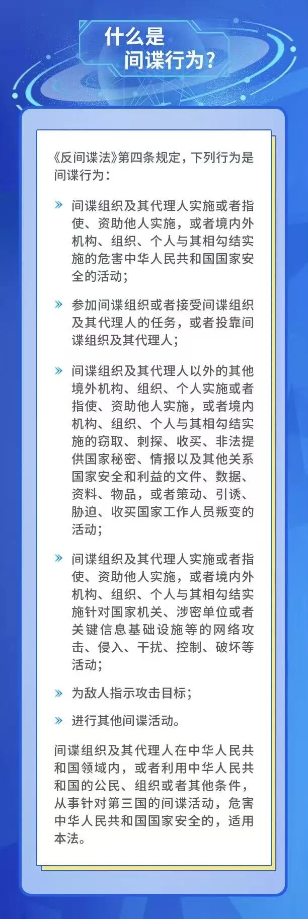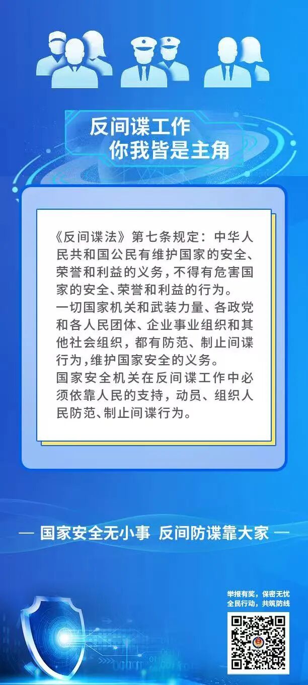 2025年是《中华人民共和国反间谍法》颁布实施第11年,新修订的《中华人民共和国反间谍法》于2023年7月1日起正式施行。反间谍斗争是维护国家安全利益,维护社会政治稳定的重要战线,让我们一起来学习反间谍知识,增强国家安全意识,共同筑牢反间防谍钢铁长城。