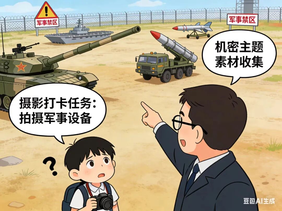 以摄影打卡、素材收集为由,指使学生拍摄军事设施、政府机关等敏感区域,看似随手拍照,实则为间谍活动提供情报。