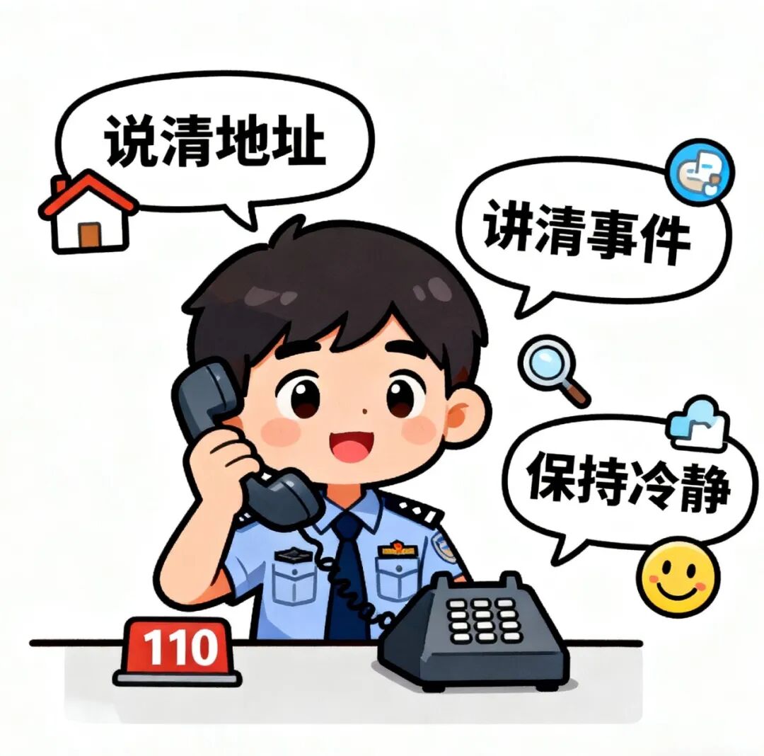 万一需要报警,请记住“四要素”口诀,冷静清晰地告诉接警员:
