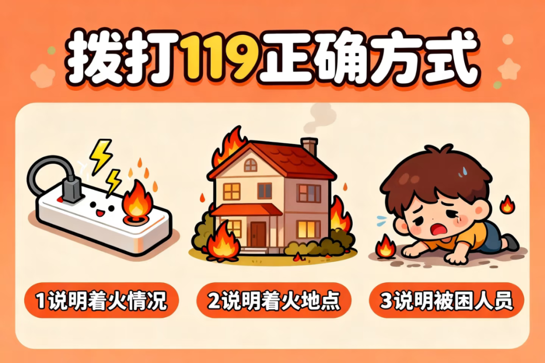 火警电话“119”是生命热线,拨打时需清晰传递4个核心信息: