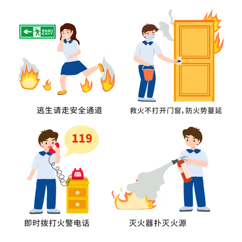 2.学习使用灭火器等消防器材,了解火灾发生时的逃生路线。
